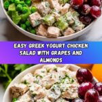 A refreshing and healthy Greek Yogurt Chicken Salad featuring tender chicken breasts, sweet grapes, crunchy celery, and toasted almonds all tossed in a creamy, lightly sweetened Greek yogurt dressing. This versatile salad is perfect for sandwiches, salads, or as a flavorful dip and is ideal for a quick, nutritious meal or snack.