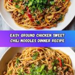 A quick and flavorful Ground Chicken Sweet Chili Noodles recipe combining tender ground chicken, vibrant vegetables, and a zesty sweet chili sauce, all tossed with perfectly cooked rice noodles for a satisfying meal.