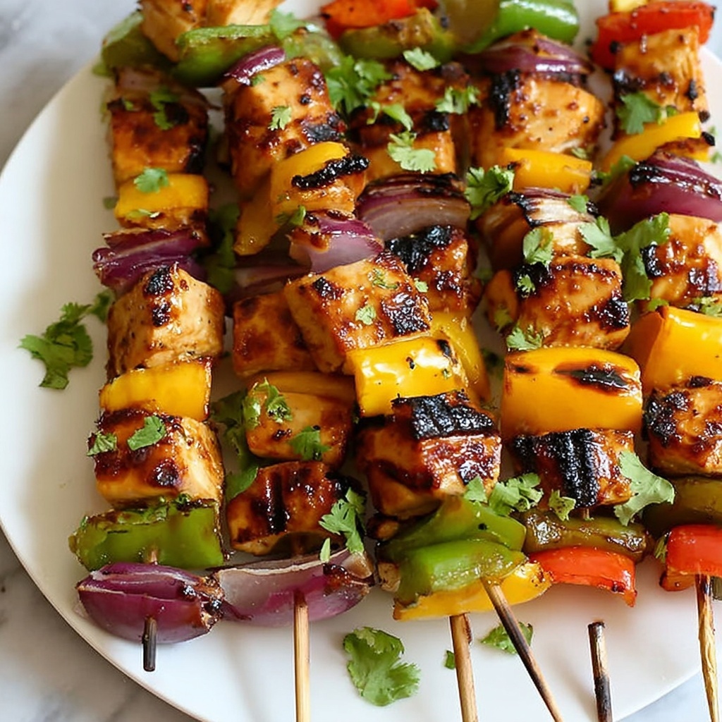 Get your grill preheated to medium heat—around 400°F. A hot grill ensures that when the chicken touches the grates, you get those perfect sear marks and caramelization. Don’t forget to brush the grill grates lightly with olive oil so the kebabs don’t stick.