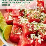 This refreshing and vibrant watermelon salad combines sweet, juicy watermelon with a zesty mix of lime, olive oil, and Tajin seasoning, topped with crumbly Cotija cheese and fresh cilantro. Perfect as a light appetizer or summer side dish, it offers a delightful balance of flavors with an optional spicy kick from jalapenos.
