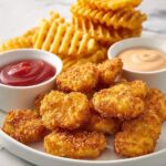 These nuggets are versatile with sauce pairings—classic ketchup, honey mustard, ranch dressing, sweet chili sauce, or even a smoky chipotle mayo all complement the crispy, flavorful crust beautifully.