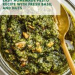 This homemade pesto recipe is a vibrant, flavorful sauce combining fresh basil, toasted pine nuts and pistachios, garlic, Parmesan cheese, and olive oil. Perfect as a topping for pasta, a spread for sandwiches, or a dip, this fresh pesto is easy to make with simple ingredients and can be stored in the refrigerator or freezer for convenience.