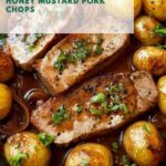 This Honey Mustard Pork Chops recipe features tender, juicy pork chops cooked to perfection in a flavorful honey mustard sauce paired with golden brown baby potatoes. The dish combines sweet, tangy, and savory flavors with simple ingredients for a delicious and satisfying meal perfect for a weekday dinner.