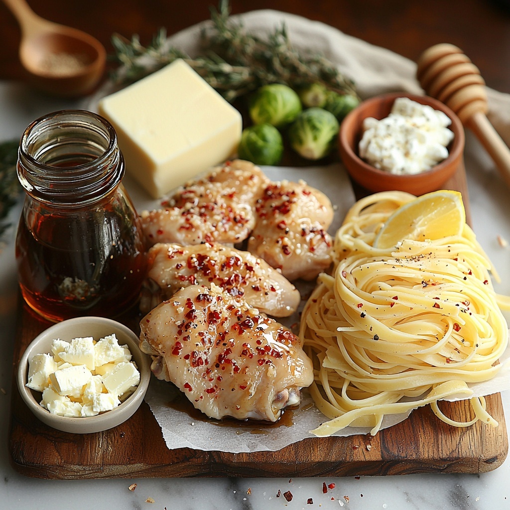 These ingredients are straightforward but powerhouse players in building the irresistible flavor and texture profile of this dish. Each one brings something vital, from the rich creaminess of the Alfredo sauce to the vibrant punch of roasted Brussels sprouts and zesty whipped feta.