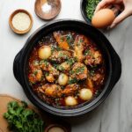 Jjimdak is a flavorful Korean braised chicken dish featuring tender chicken pieces simmered in a savory soy-based sauce with vegetables and sweet potato starch noodles. This comforting one-pot meal balances sweet and savory elements with a hint of spice, making it a beloved classic in Korean cuisine.