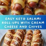 You can serve the Keto Salami Roll-Ups Recipe right away, enjoying the fresh flavors at their best. Alternatively, refrigerate them for a little while to let the flavors meld together beautifully, which also helps firm up the cream cheese filling for a cleaner bite.
