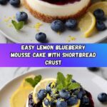 A refreshing Lemon Blueberry Shortbread Mousse Cake featuring a buttery shortbread crust, a light and tangy lemon mousse layer, and a vibrant homemade blueberry sauce topping. This no-bake mousse cake is perfect for spring or summer gatherings, combining creamy, zesty, and fruity flavors in every bite.