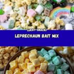 Leprechaun Bait is a fun and festive St. Patrick’s Day snack mix that combines sweet and crunchy ingredients like muddy buddies, Life rice cereal, Lucky Charms clusters, popcorn, mini marshmallows, green M&Ms, and white almond bark coated with green food coloring. Perfect for party treats or gifting in snack bags with a playful twist!