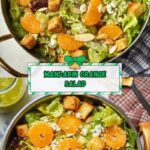 A refreshing and vibrant Mandarin Orange Salad featuring crisp lettuce, juicy mandarin segments, crunchy sugared almonds and croutons, tangy apple cider vinaigrette, and a touch of feta cheese, perfect as a light lunch or side dish.