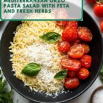 A refreshing and vibrant Mediterranean Orzo Pasta salad featuring tender orzo, cherry tomatoes, cucumber, Kalamata olives, and tangy feta cheese, all tossed in a zesty lemon and red wine vinegar dressing with fresh herbs. Perfect as a light main dish or a flavorful side.