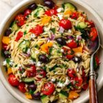 A refreshing Mediterranean Orzo Pasta Salad featuring tender orzo, vibrant cherry tomatoes, crisp cucumber, tangy feta, and a zesty homemade dressing. Perfect for summer gatherings or a light lunch, this cold pasta salad combines fresh herbs and a balanced vinaigrette to create a flavorful and easy-to-make dish.