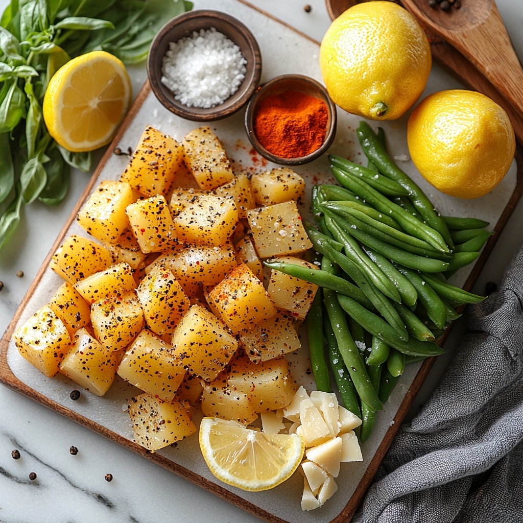 This Parmesan Roasted Potatoes and Green Beans recipe is a delicious, easy-to-make side dish featuring tender Yukon Gold potatoes and crisp green beans tossed in a tangy lemon-Dijon sauce and topped with savory Parmesan cheese. Roasting at a high temperature caramelizes the vegetables for rich flavor and a satisfying texture. Perfect for weeknight dinners or holiday meals, this dish offers a delightful balance of citrus brightness, garlic punch, and cheesy goodness.