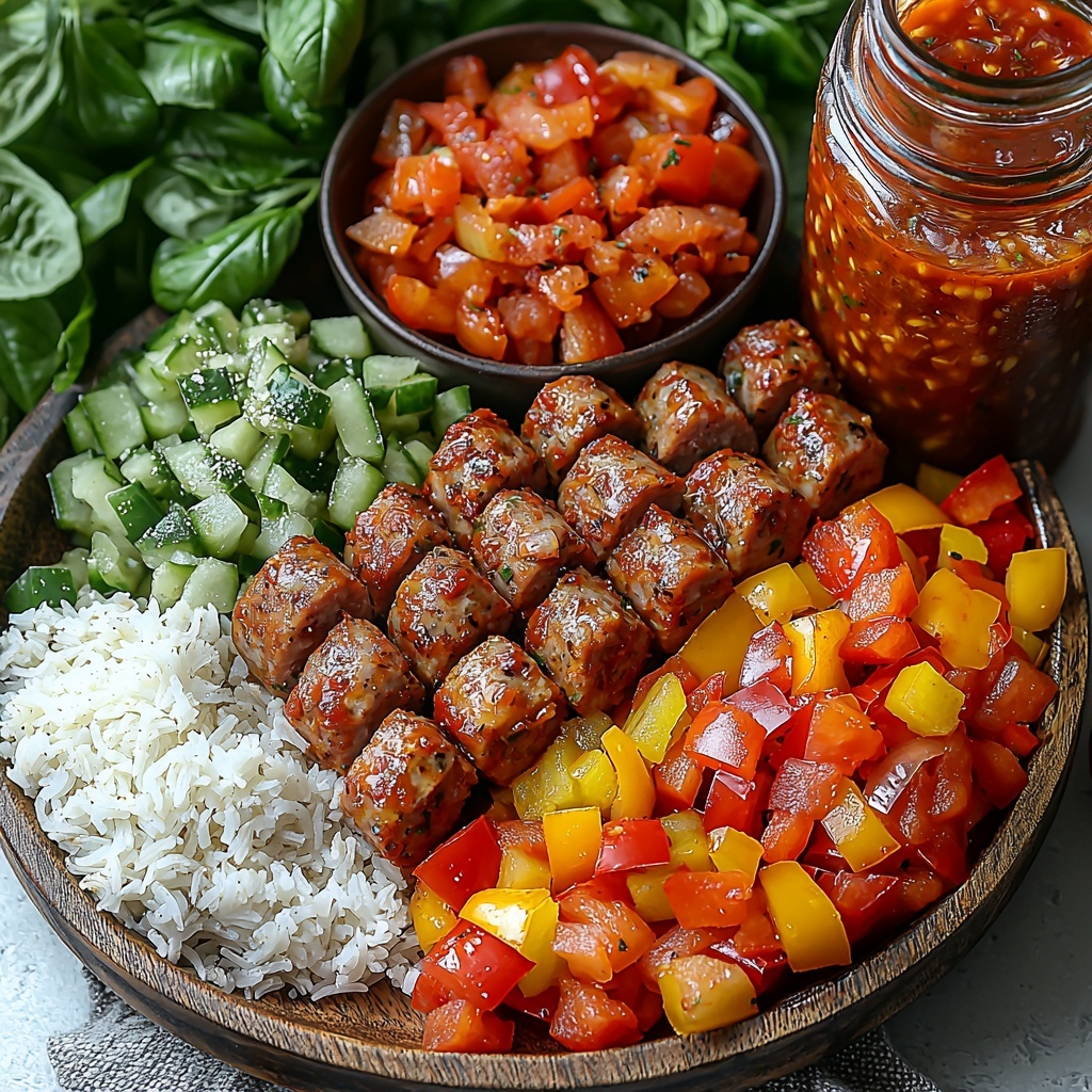 Definitely! Substitute the sausage with seasoned plant-based sausage or hearty mushrooms, and use vegetable broth instead of beef broth. The tomatoes, peppers, and herbs will still deliver plenty of flavor.