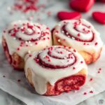 Delight in these festive Red Velvet Valentine’s Day Cinnamon Rolls featuring a soft cocoa-flavored dough tinted with vibrant red food coloring and topped with a luscious cream cheese frosting. Perfect for a romantic breakfast or a special treat, these cinnamon rolls combine the classic flavors of cinnamon sugar with a rich red velvet twist.