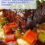 This Red Wine Braised Beef recipe features a tender beef chuck roast slow-cooked in a rich red wine and herb sauce. The beef is seared, then braised in a combination of red wine, beef broth, aromatic vegetables, and herbs until fork-tender, resulting in a deeply flavorful and succulent dish that’s perfect for a comforting dinner.