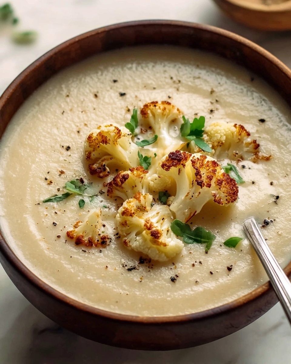 This Roasted Garlic Cheddar Cauliflower Soup Recipe is a true kitchen champion—simple ingredients come together to create a deeply flavorful, creamy delight that feels special yet is incredibly easy to make. Give it a try and watch this humble soup become one of your go-to comfort foods for chilly days or anytime you crave a warm hug in a bowl.