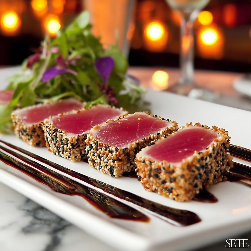 - The perfect sear achieves a crispy sesame crust with a rare center for optimal texture.