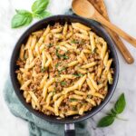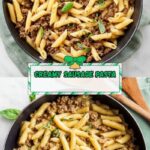 This hearty and creamy sausage pasta recipe combines Italian sausage, penne pasta, and mascarpone cheese in a flavorful tomato broth. Perfect for a quick weeknight dinner, it features aromatic herbs, tender sausage, and a luscious sauce made right in one skillet.