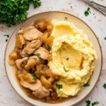 Once cooked, carefully slice the tender pork and serve it topped with the warm apple and onion sauce that’s accumulated at the bottom of the slow cooker. The sauce is where all the magic happens, adding moisture and flavor that elevates each mouthful.