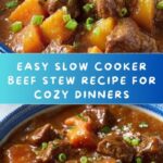 A hearty and comforting Slow Cooker Beef Stew featuring tender beef cubes simmered with vegetables and aromatic herbs in a savory broth. Perfect for a satisfying dinner with minimal hands-on time.