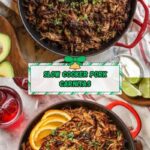 This Slow Cooker Pork Carnitas recipe features tender, flavorful pork butt slow-cooked with a blend of spices, onions, garlic, bay leaves, green chilies, Sangria wine, and fresh citrus. The pork is then shredded and crisped under the broiler for a perfect combination of juicy and crispy textures, ideal for tacos, quesadillas, enchiladas, or tostadas.