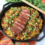 This Spicy Korean Beef Noodles recipe features tender Swiss steak marinated in a flavorful Korean gochujang sauce, served with savory ramen noodles cooked alongside onions and mushrooms. The combination of the spicy, tangy sauce and the hearty beef creates a delicious one-pan dish perfect for a quick and satisfying meal.