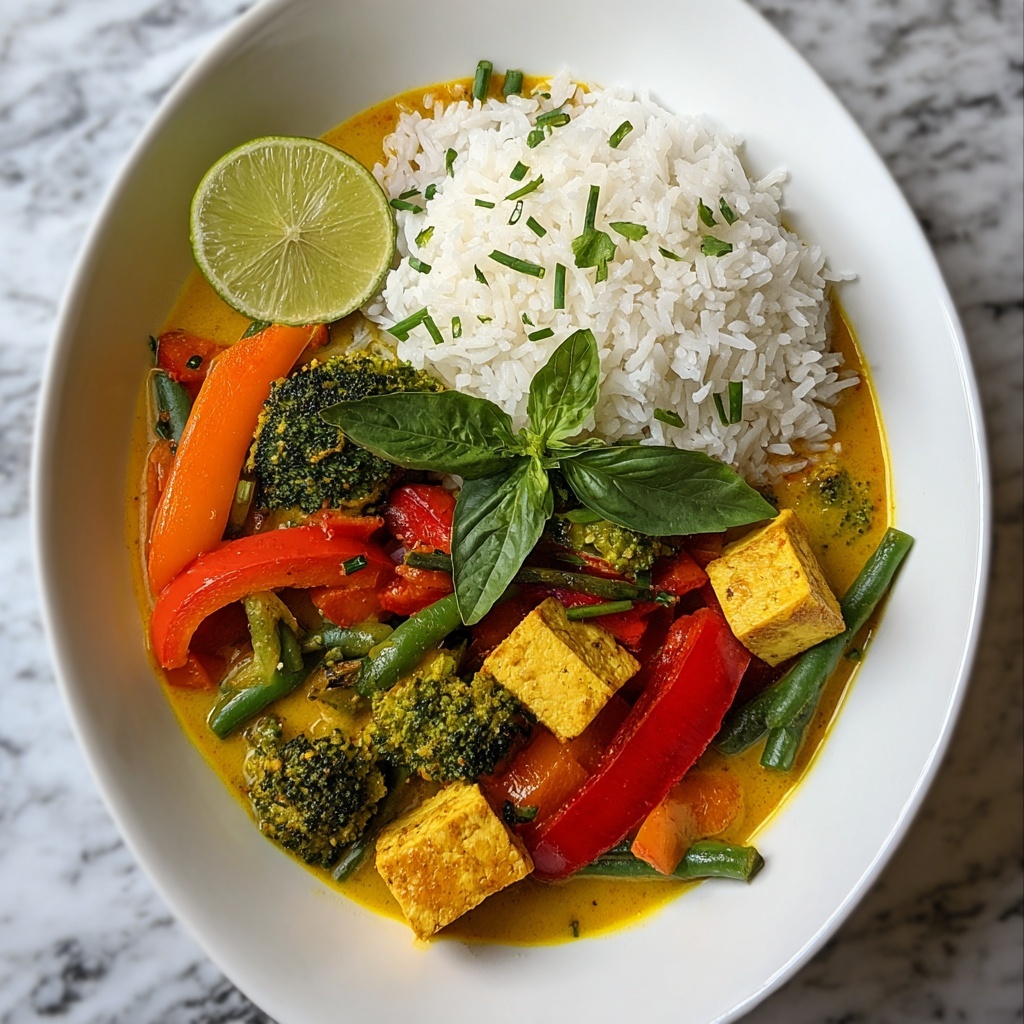 A vibrant and flavorful Spicy Vegan Thai Vegetable Curry made with fresh vegetables, tofu, and a rich coconut curry sauce. This wholesome and easy-to-make dish combines the heat of red curry paste with creamy coconut milk, finished with fresh herbs and served over jasmine rice for a comforting plant-based meal.