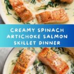 This Spinach Artichoke Salmon Recipe pairs wonderfully with fluffy rice or creamy mashed potatoes that soak up the luscious sauce. Roasted asparagus or a crisp green salad also make for fresh, light companions to balance the indulgence.