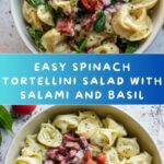 A fresh and flavorful Spinach Tortellini Salad featuring cheese tortellini, savory salami, fresh spinach, cherry tomatoes, and a zesty homemade Italian dressing. Ready in just 20 minutes, this salad is perfect for a quick lunch or vibrant side dish.