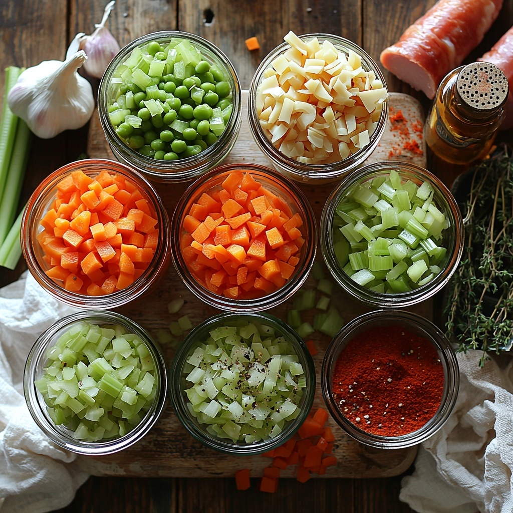 • Ham bone (or hocks): Infuses the soup with irresistible smoky, meaty richness.