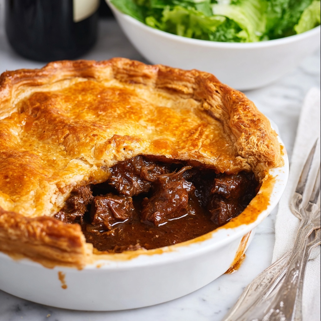 This classic Steak and Ale Pie recipe features tender chunks of beef chuck slow-cooked in a rich ale-infused gravy, topped with a decadent cheddar cheese puff pastry crust. Perfectly browned meat and a flavorful sauce create a hearty, comforting dish ideal for cozy meals.