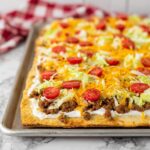 Taco Pizza with Cream Cheese, Ground Beef, and Fresh Toppings Recipe
