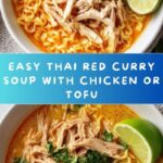 This vibrant Thai Red Curry Soup is a flavorful and hearty dish featuring a rich coconut milk base infused with red curry paste, fresh vegetables, and your choice of shredded chicken or tofu. Perfectly balanced with aromatic ginger, garlic, and a hint of lime, this soup is both comforting and light, making it an ideal meal for any day.