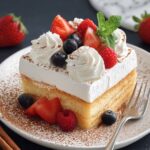 10. Decorate and Serve: Spread the whipped cream evenly over the soaked cake and garnish as desired, such as with fresh fruit or cinnamon. Serve chilled for a refreshing dessert experience.