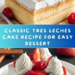 This classic Tres Leches Cake is a moist and rich dessert soaked in a blend of three milks and topped with fluffy whipped cream. Perfectly balanced in sweetness and texture, this cake is an irresistible treat for any occasion.