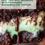 These Thin Mint Marshmallow Brownies are a decadent twist on classic brownies, featuring rich brown butter-infused chocolate batter topped with a peppermint-flavored marshmallow creme and finished with crunchy chopped Thin Mint cookies for a refreshing mint-chocolate combination.
