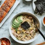 You can store any leftover salmon rice mixture in an airtight container in the refrigerator for up to 2 days. Keep toppings like seaweed sheets and avocado separate to maintain their crispness and freshness.