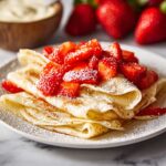 These crepes are incredibly thin, buttery, and tender, making them the best crepes you’ll ever have. They feature a versatile batter that can be sweet or savory, with optional cream cheese filling and fresh strawberry topping that adds a delicious burst of flavor. Perfect for breakfast, brunch, or a delightful dessert, these crepes pair wonderfully with various fillings like Nutella, mixed berries, cinnamon sugar, or simply lemon and sugar.
